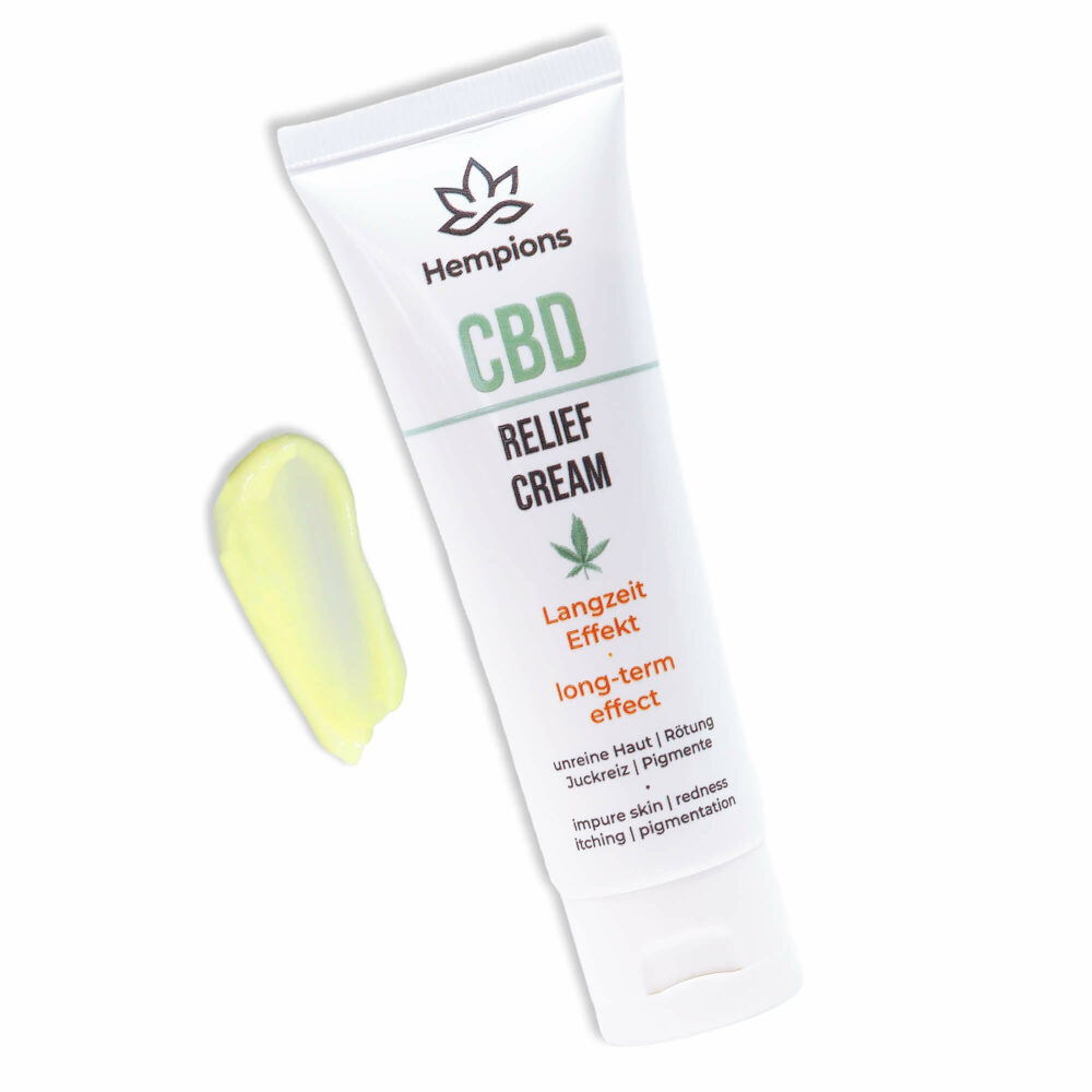 The CBD Relief Cream consists only of natural and plant-based active ingredients. The special formulation and the high concentration of CBD of 2.2% and other effective ingredients ensure long-lasting and effective development of the effect. The term "relief" means "relaxation" or "alleviation" in German, and that is exactly what this cream is all about: the Relief of skin problems and the Relaxation the affected areas. When applied, the cream has a cooling, soothing effect, with the long-term effect of CBD lasting up to 7 hours lasts. The ointment is ideal as a supplement to existing skin care and can relieve muscles and joints.