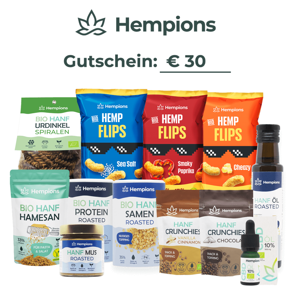 - Einlösbar auf alle Produkte im Hempions Webshop